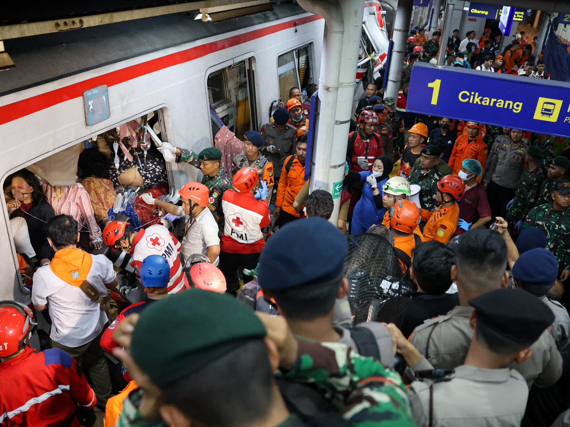 Emergency workers are working “slowly” to cut away wreckage and free those trapped inside the mangled carriages, Syafii said, according to Kompas.com.